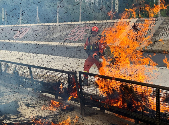 7月11日至17日,新疆森林消防总队巴州支队开展了第四届“火焰蓝”比武,100余人在营区和野外驻训场地,区分个人竞技类和集体竞技类15个课目展开激烈角逐。