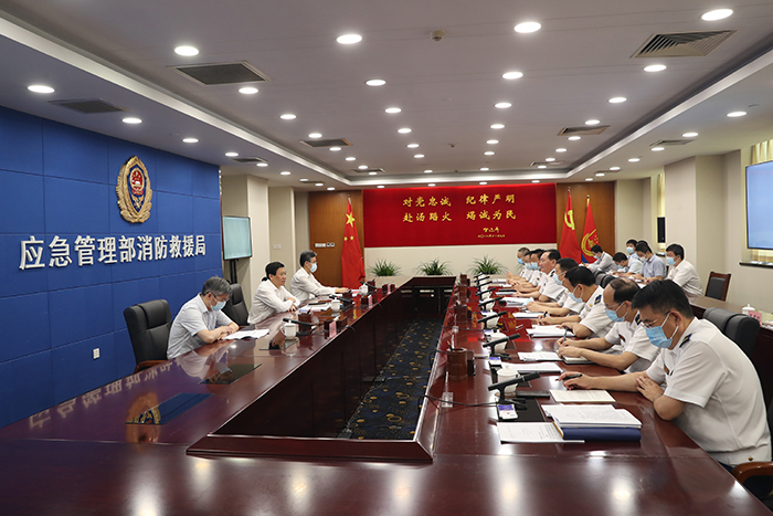 部党委委员、政治部主任郝军辉一同调研。部党委委员、消防救援局局长琼色,消防救援局政治委员詹寿旺分别汇报工作情况。