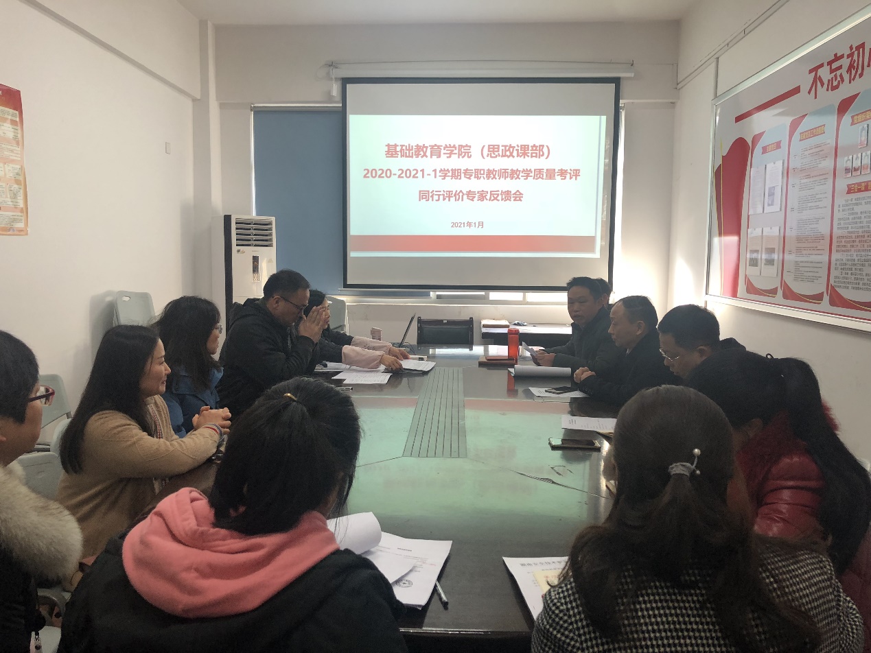 1月13日上午9点,基础教育学院(思政课部)在明正楼614召开本学期专职教师教学质量考评同行评价专家反馈会。学院副院长周劲松、规划与质量建设处处长尹孝玲、基础教育学院院长付正光及应邀专家10人等参加会议,会议由付正光主持。