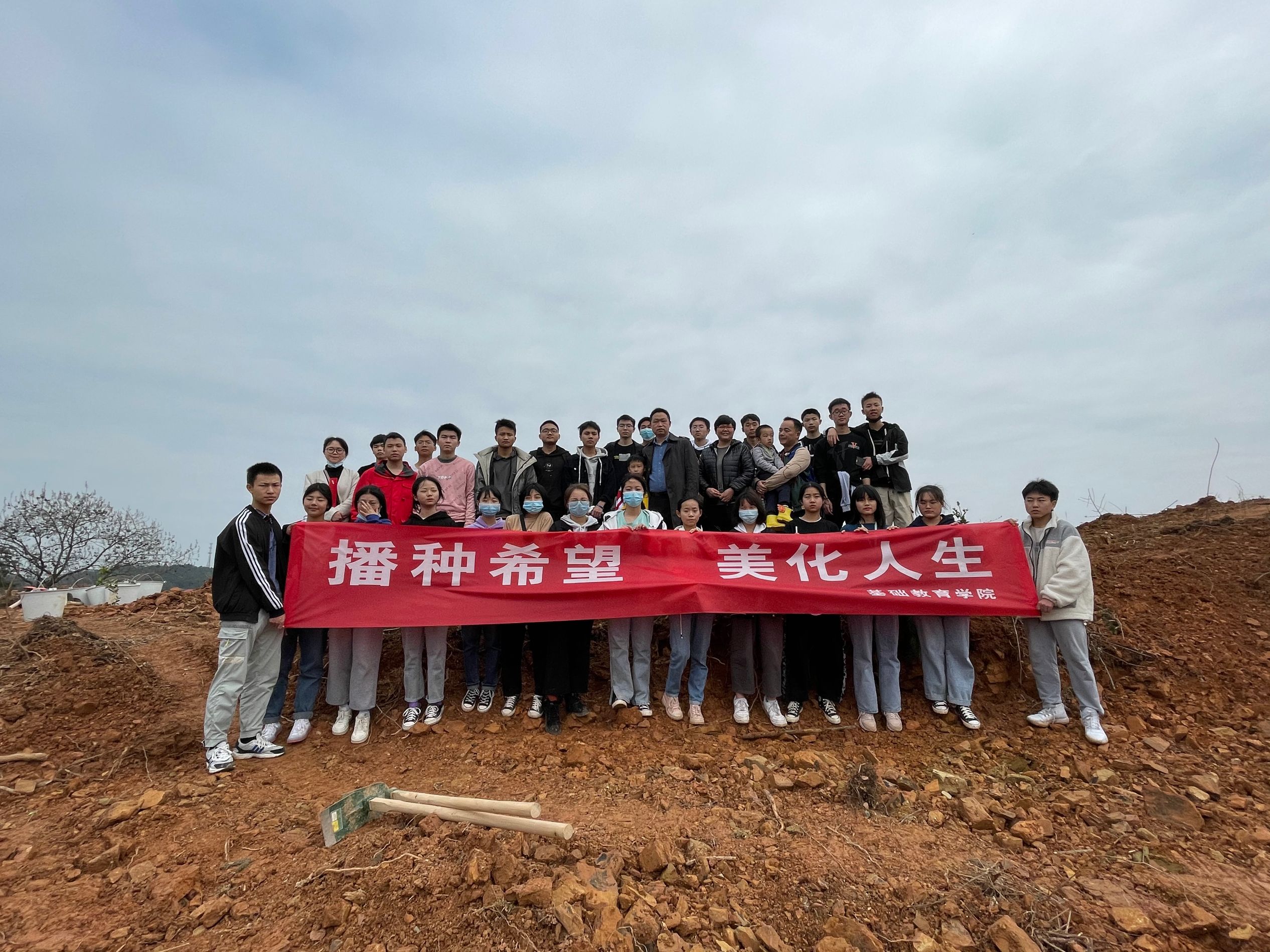 4日一大早,基础教育师生就到达了路口社区植树基地,徐慰慰书记激情澎湃的给同学们讲解了培育小树苗的注意事项,大家展现出十分的热情,一个个树坑的挖成,一棵棵树苗的栽种,都象征着绿色的希望。每一铲泥土的填充、每一桶水的浇灌、每一滴汗水的流下,都代表着师生的奉献与关爱。每年的植树节义务活动是我院一直坚持"实践育人,培根铸魂"的传统主题教育活动,也是我院坚持以立德树人为中心,把思想价值引领贯穿教育全过程和各环节的"三全育人"活动。新植的花草树木在春风的吹拂下静待发芽、开花,希望和成长的力量也悄然植根于同学们心中。