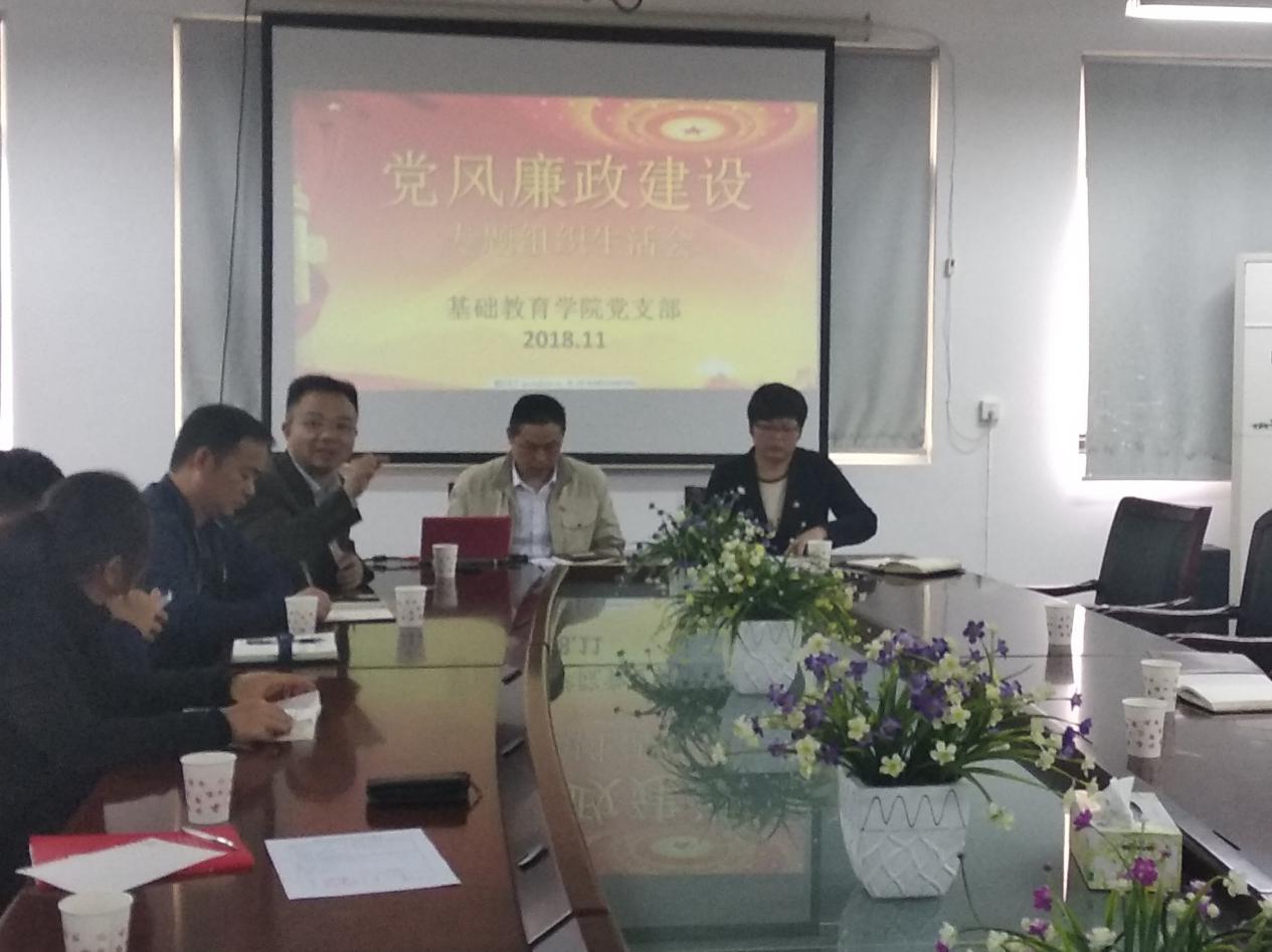 11月30日下午,基础教育学院党支部在图书馆606会议室召开党风廉政建设专题组织生活会。支部全体党员参加会议,学院(中心)党委委员、中心副主任曾大恒同志出席会议,会议由党支部书记徐慰慰主持。