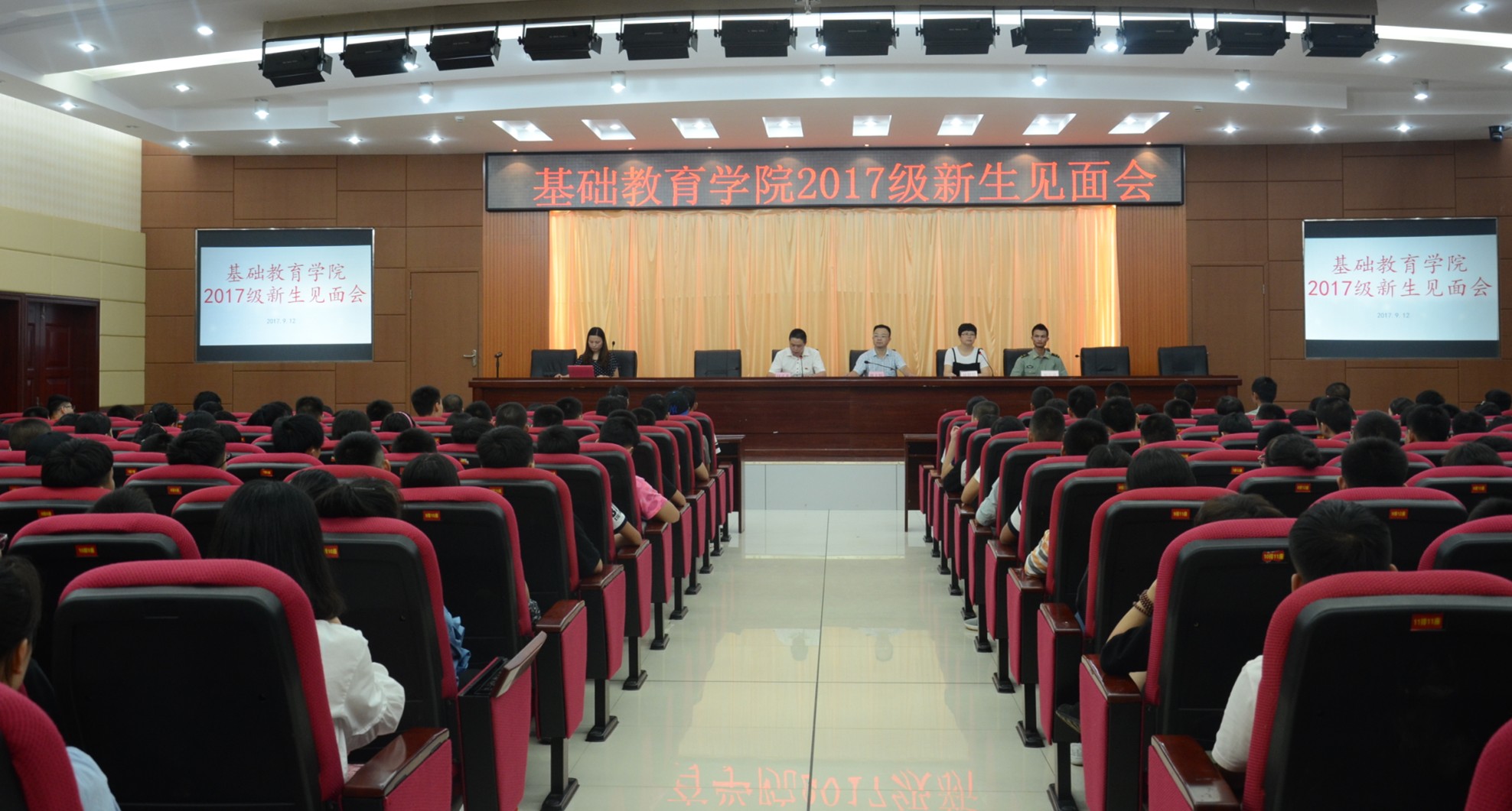 2017年9月12日晚7:00,基础教育学院(思政课部)2017级新生见面会在图书馆五楼视频会议室隆重召开,校(中心)党委委员曾大恒副主任、基础教育学院(思政课部)党政负责人徐慰慰、付正光等校院领导出席见面会,军训教官、新生辅导员、学生助理辅导员及360余名新生参加见面会。见面会由基础教育学院党务负责人徐慰慰主持。