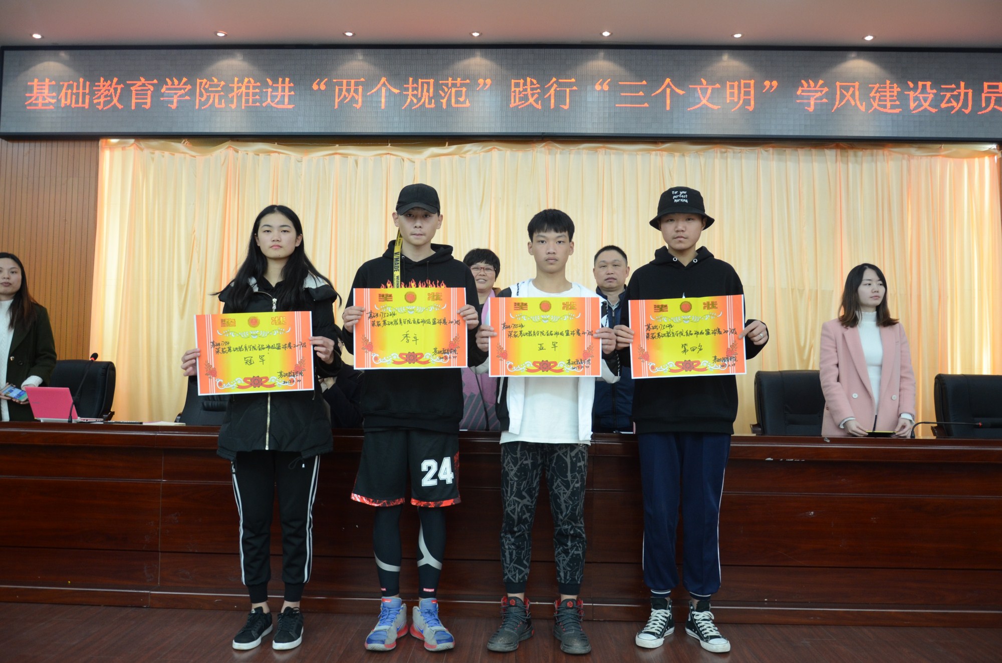在学院首届篮球赛获奖班级颁奖表彰完毕之后,黄金玉宣读了违纪学生的处分决定,并希望全体同学引以为戒,自觉遵守校级班规,做合格而优秀的文明大学生。
