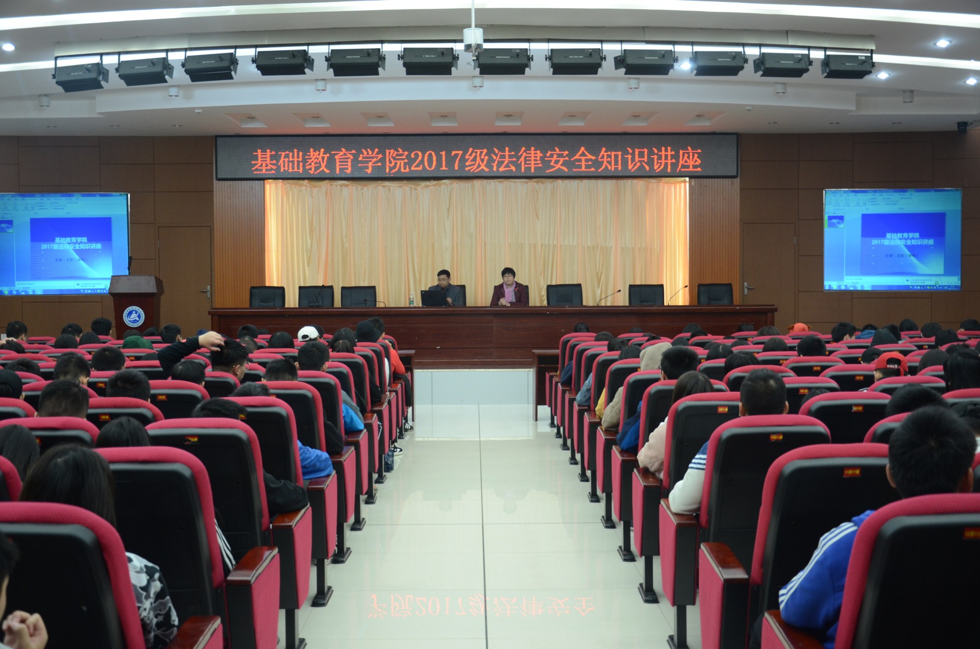 为提高五年制学生遵守校规校纪的自觉性,进一步增强大学生的法制观念和安全防范意识,大力推进平安和谐校园建设。11月29日下午3:30,基础教育学院在图书馆五楼视频会议室举行法制安全教育讲座。本次讲座由我校2004届毕业生法学0101班学生,现湖南天地人律师事务所合伙人王欢律师主讲,基础教育学院党务工作负责人徐慰慰主持。2017级全体新生到场聆听。