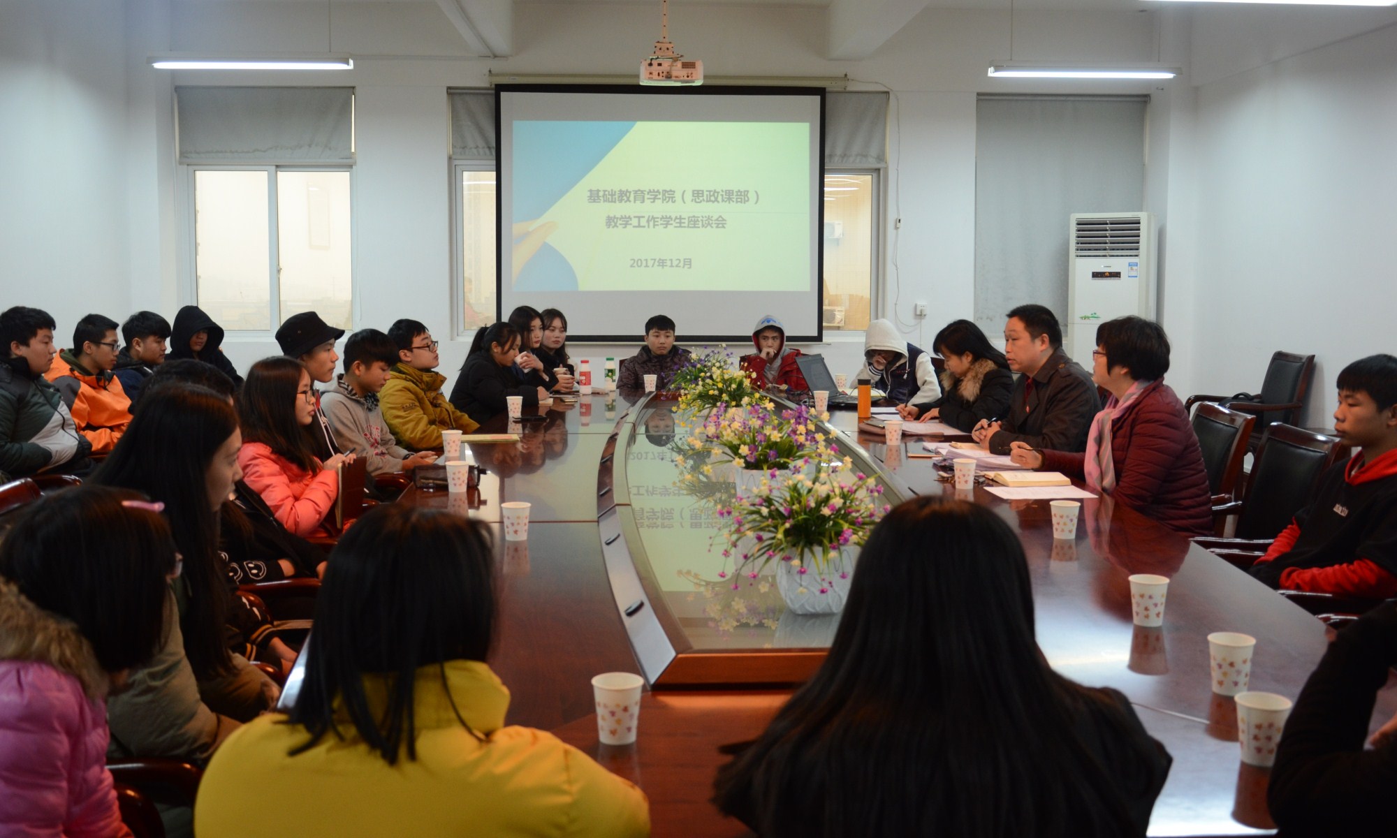 12月14日下午,基础教育学院(思政课部)教学工作学生座谈会在图书馆606会议室召开。基础教育学院(思政课部)行政负责人付正光、党务工作负责人徐慰慰、教务科负责人艾小艳、办公室负责人侯体湘及各班学习委员与学生代表共计33名学生参加座谈会,会议由艾小艳主持。