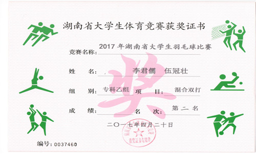 由湖南省教育厅主办,湖南省学生体育协会执行,长沙医学院承办的2017年湖南省大学生羽毛球比赛于4月14日-20日在长沙医学院举行,来自省39所高校378名羽毛球运动员参加了比赛。经过激烈角逐,我院羽毛球代表队获得了一个团体亚军、一个团队季军、一个单项亚军,二个单项季军的好成绩(羽毛球代表队获奖情况附后)。